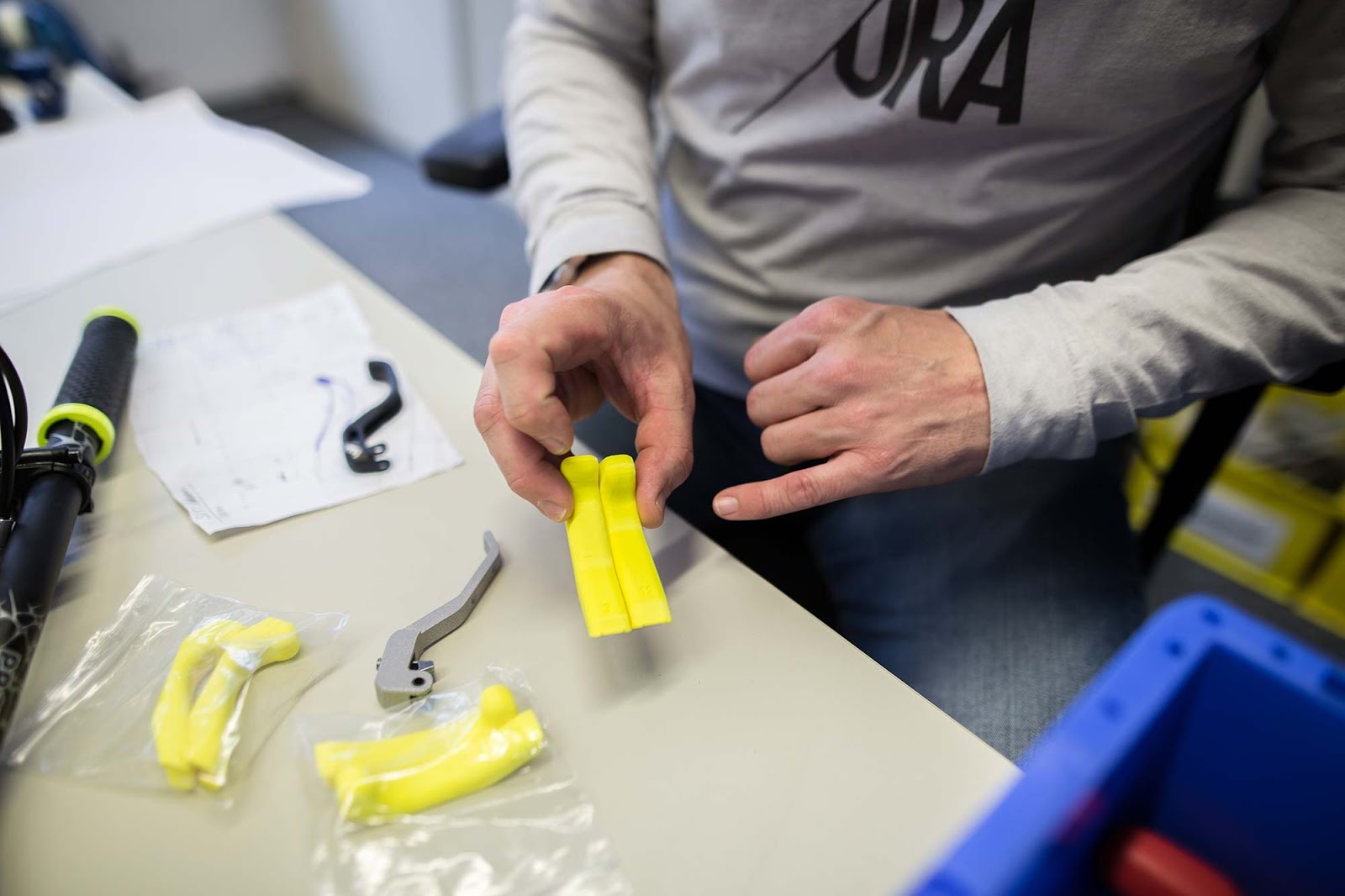 Die peronalisierten Bremshebel werden im 3D-Drucker hergestellt.