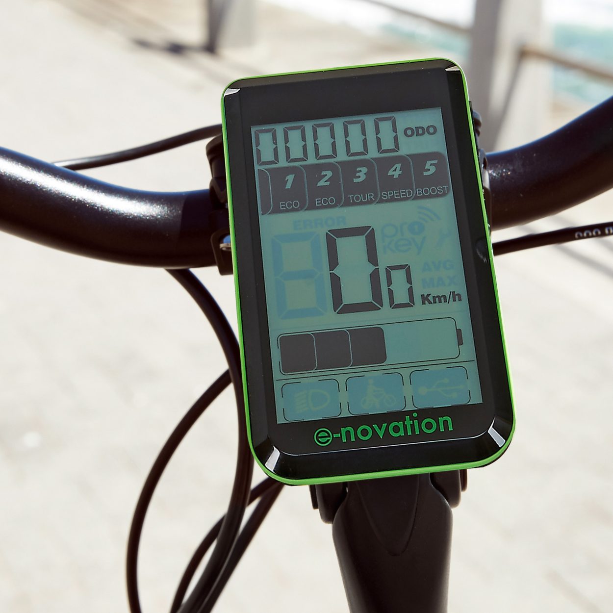- e-novation-LC-Multifunktionsdisplay, beleuchtet, mit 5-stufiger Leistungsregelung, umfangreichen Tachometerfunktionen und USB-Ladebuchse